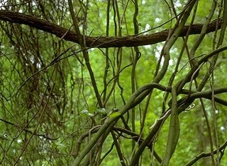 birds feed on insects hiding in the tangled vines. Small mammals and deer